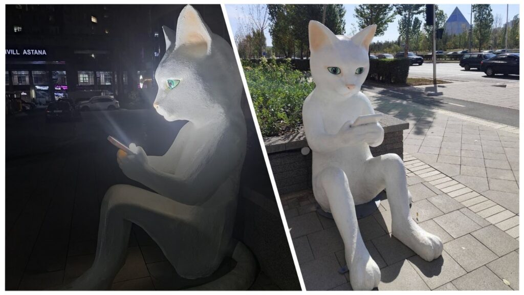 В Астане установили необычную скульптуру — кота, сидящего на тротуаре и увлечённо смотрящего в экран смартфона. По сообщениям столичного паблика, арт-объект разместили в районе жилого комплекса Highvill. Особенность инсталляции в том, что по вечерам экран устройства подсвечивается, освещая мордочку животного. Кто именно стал автором работы и с какой целью она появилась на улице, пока неизвестно. Между тем горожане активно обсуждают загадочную скульптуру. Одни пытаются разгадать её символику, другие вспоминают о проблеме защиты животных и их безопасности в городской среде. Некоторые жители также выражают беспокойство, что арт-объект может стать легкой мишенью для вандалов. «Так любят кошек: убивают, запрещают кормить, поддерживают живодерню, а фигурки ставят. Удивительная страна!», «Я так люблю кошек, спасибо тому, кто поставил», «Лучше кошек нет существа на свете. Пора научиться их любить», «Прикольная идея, одобряю», «Нужно было книгу в лапы дать. Тогда было бы больше смысла», «Надеюс