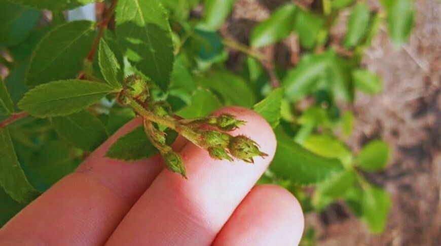 Черенки собирают во время санитарной обработки роз на участке. Подойдут средние по размеру веточки на три-четыре почки. Листья снимают.