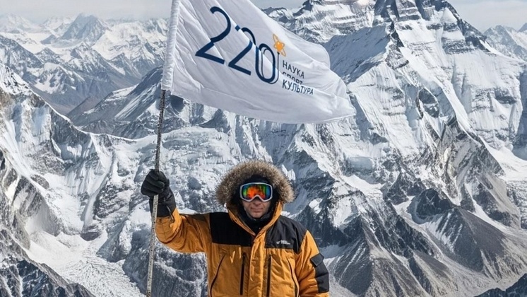 Новосибирский учитель поднялся на Эверест с флагом своей школы