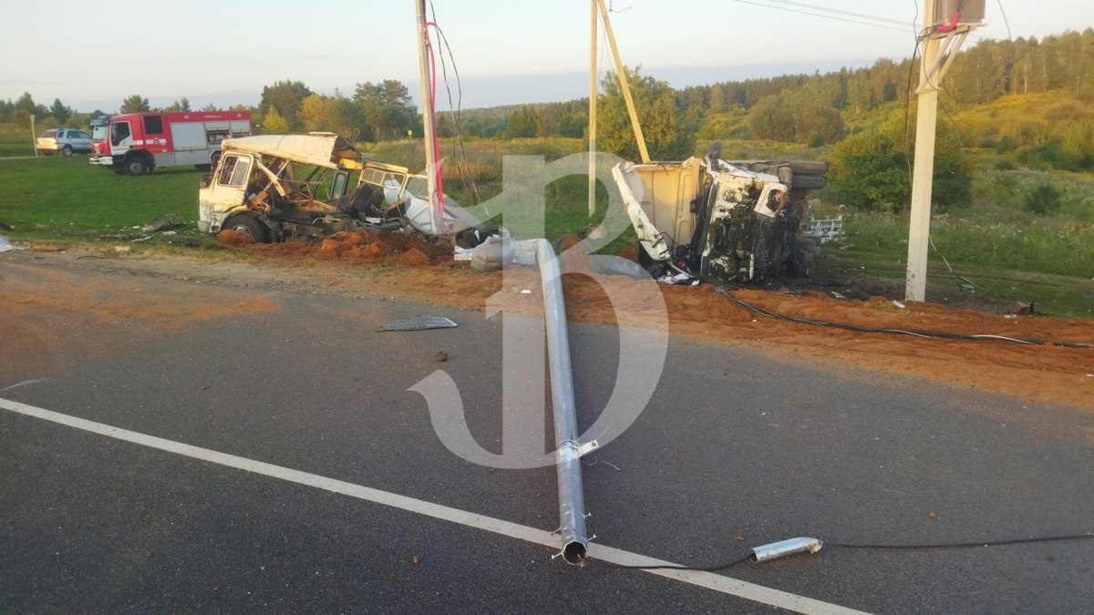 На Орловщине водитель грузовика снес стоящий на обочине ПАЗик