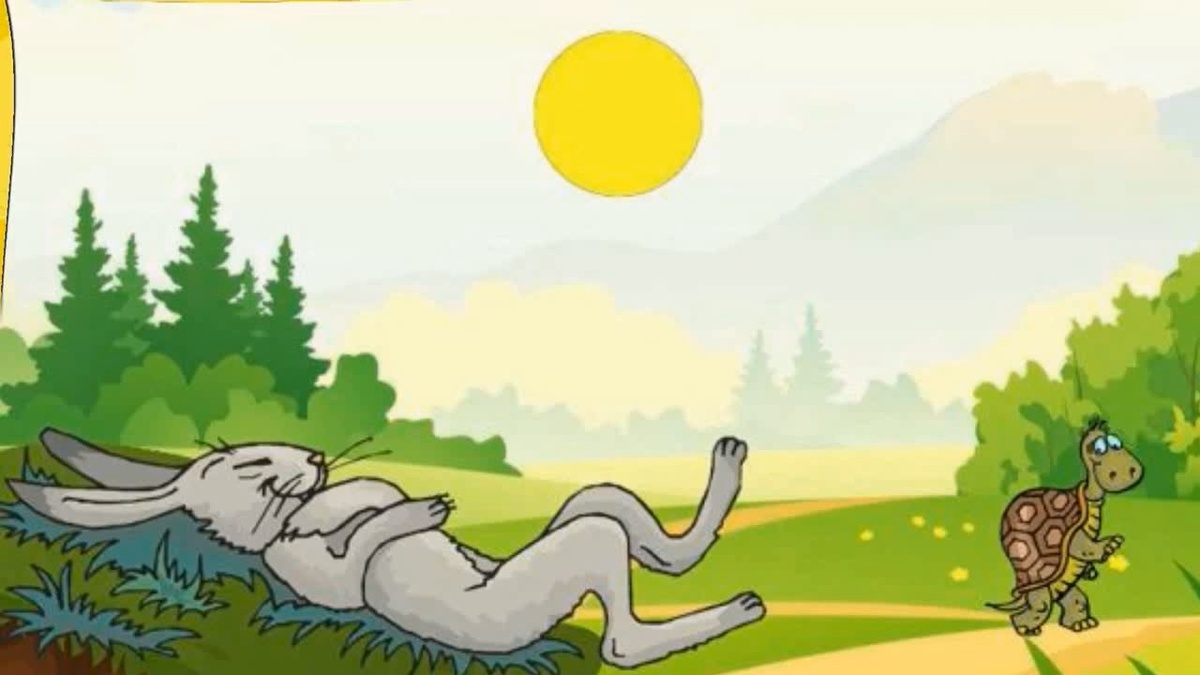 В лесу жил кролик. Его любимым занятием было гулять вприпрыжку по лесу и восхищаться собой. Он обожал рассказывать всем вокруг о том, что он быстрее всех в лесу. «Я самый быстрый зверь в лесу. Кто хочет сразиться со мной в скорости?» Он действительно был быстрее всех. У него были большие и сильные лапы. Другим зверям очень не нравилась хвостливость кролика, но никто из них не мог обогнать его. «Да, я снова победил, потому что я самый быстрый». Снова и снова кролик радостно кричал: «Какой же я быстрый. Никто не сможет обогнать меня». Лесные звери злились на его хвостовство, но ничего не могли поделать. «Может быть, он и быстрее всех, но то, как он хвастается, мне совсем не нравится. Кто-то должен проучить его, научить уму-разуму». Однажды звери решили преподать кролику урок и отучить его хвастаться. Они решили обратиться к мудрому черепахе. Черепаха передвигался очень медленно. Ему бы понадобился целый день на то, чтобы преодолеть расстояние, которое кролик преодолевал за минуту. Однако