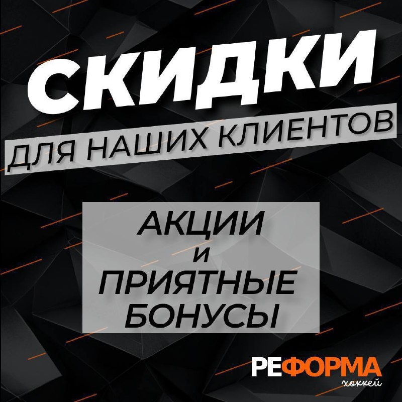 🛍 СКИДКИ В РЕФОРМЕ 🛍 👇 Друзья, хотим напомнить о скидках , которые действуют в нашем сервисном центре/магазине: ➖ для постоянных клиентов 5️⃣- 2️⃣0️⃣ % ➖ для участников команд различных лиг 5️⃣- 1️⃣0️⃣ % ➖ для новых клиентов 1️⃣0️⃣ % (при выполнении определенных условий) ➖ каждая пятая заточка - бесплатно 😃 ➖ регулярные акции и распродажи (отслеживайте в нашем Телеграм-канале 📱 и в группе 📱 reformahockey.ru