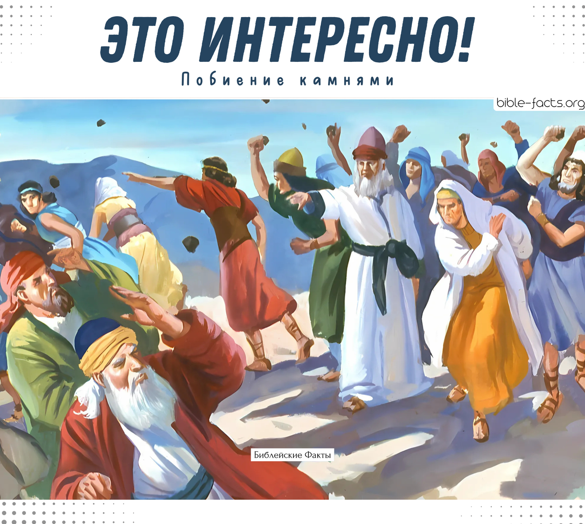 Каким образом приводились в исполнение казни в древнем Израиле? Один из видов было побитие камнями. Первый случай побития камнями описан в Лев. 24:10–16: сын израильтянки и египтянина произнёс хулу на имя Божье, и весь народ побил его камнями. По закону, первыми должны были бросить камни именно свидетели преступления (Втор. 17:7). Это проверяло их искренность и ответственность. P.S. После казни тело грешника часто накрывали большим холмом из камней. Так было сделано с Аханом (Иисус Навин 7:26) и царем города Гай (Иисус Навин 8:29). Этот каменный курган служил вечным предостережением для будущих поколений о последствиях греха. • Телеграмм канал (Библейские факты) • Больше интересных Библейских Фактов (VK) • Библейские факты (сайт)