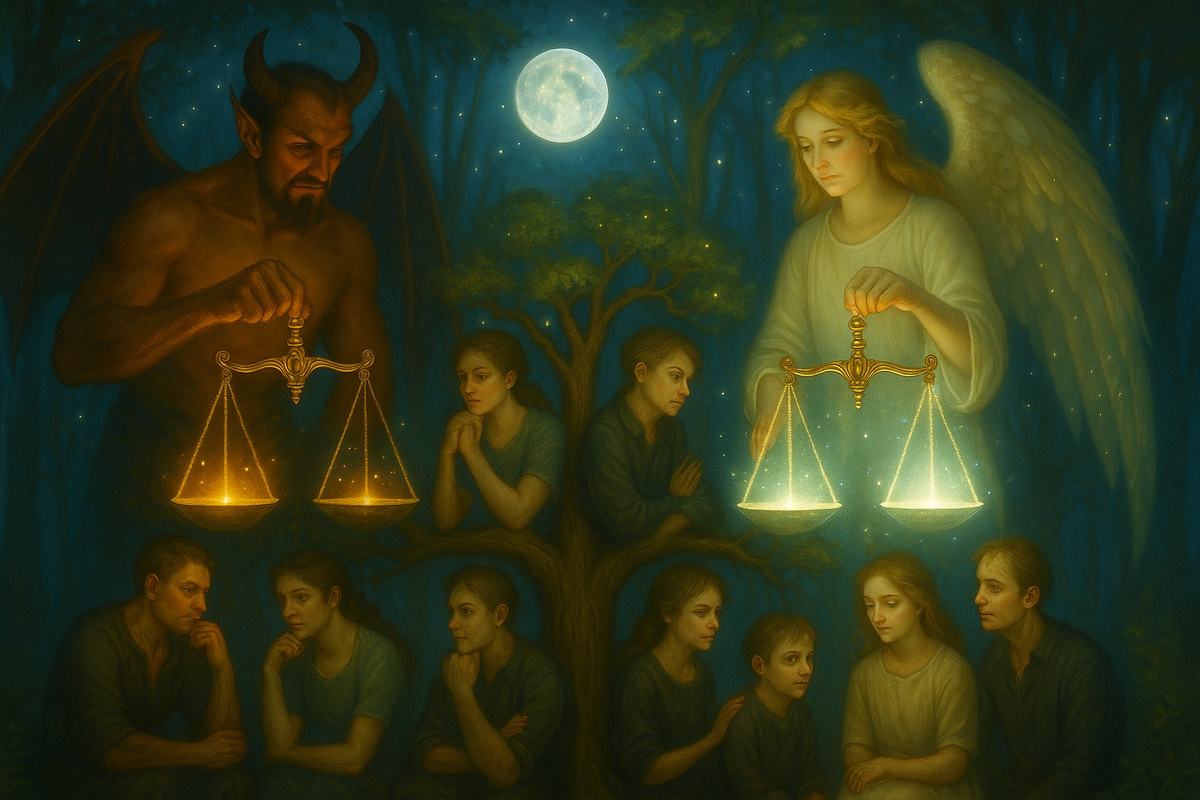 По сути не смотря на то что Добро и Зло это - глобальное и Вселенское, очень важным являются те самые мелочи, как в поговорке что Дьявол кроется в мелочах, а "мелочи" эти живут и цветут в самом человеке. По сему, бесполезно пытаться указать пальцем на потусторонние силы мол они обвели вокруг пальца, вынудили, или к чему-то побудили.... Нет, человек сам мастер поддаваться своим Порокам, и растерять Добродетель.