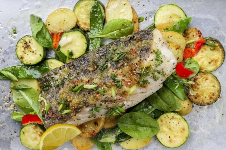 Праздник вкуса! Запечённый судак с льняной корочкой и овощами.