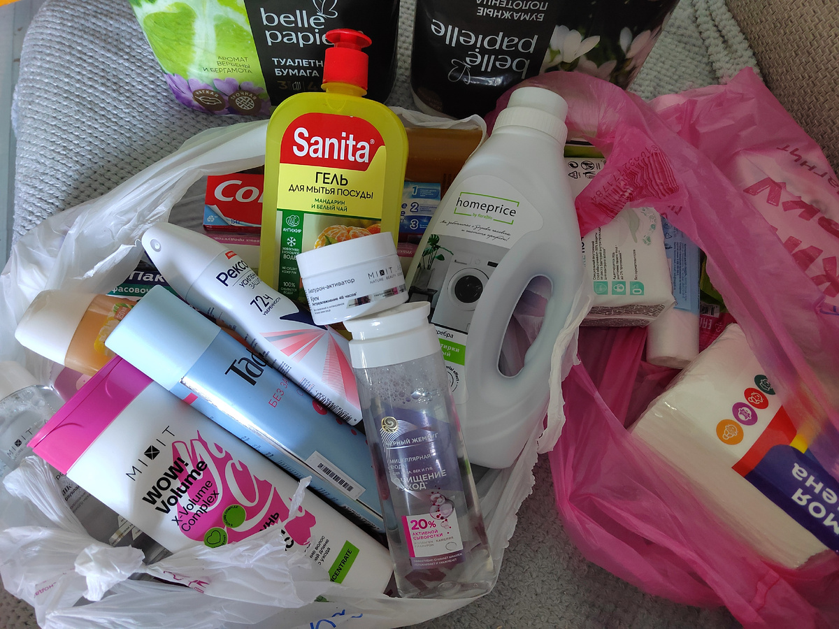 Всем здравствуйте! Сегодня статья на тему "ЧЁ купила и по чём?". Ни для кого не секрет, что нынче не только на продукты цены ого-го, но и на всё моющее, чистящее, на косметику для тела и лица тоже цены кусаются! Обычно мы стараемся ходить в "Улыбку радуги", так как там по будням дополнительная скидка 10% для многодетных (даже на жёлтые ценники). А тут пару дней назад, абсолютно случайно, я обнаружила в приложении Магнит купон на скидку 30% при заказе от 1500 рублей в Косметик. Нас в семье 5 человек и из них 4 девочки! А это значит, что траты на нас увеличиваются колоссально. Поэтому купон как никогда оказался кстати! Заказала я только самое необходимое, что уже закончилось или почти на исходе. Мне очень нравится фирма "Mixit". Как и линейка для лица, так и для волос. Также у нас еще есть этой фирмы бальзам для волос литровый и пенка для умывания. У Юльчи сейчас кожа подростковая, где то прыщики, где-то неровности. А этот тоник почему то ей очень подходит, хотя он не для проблем