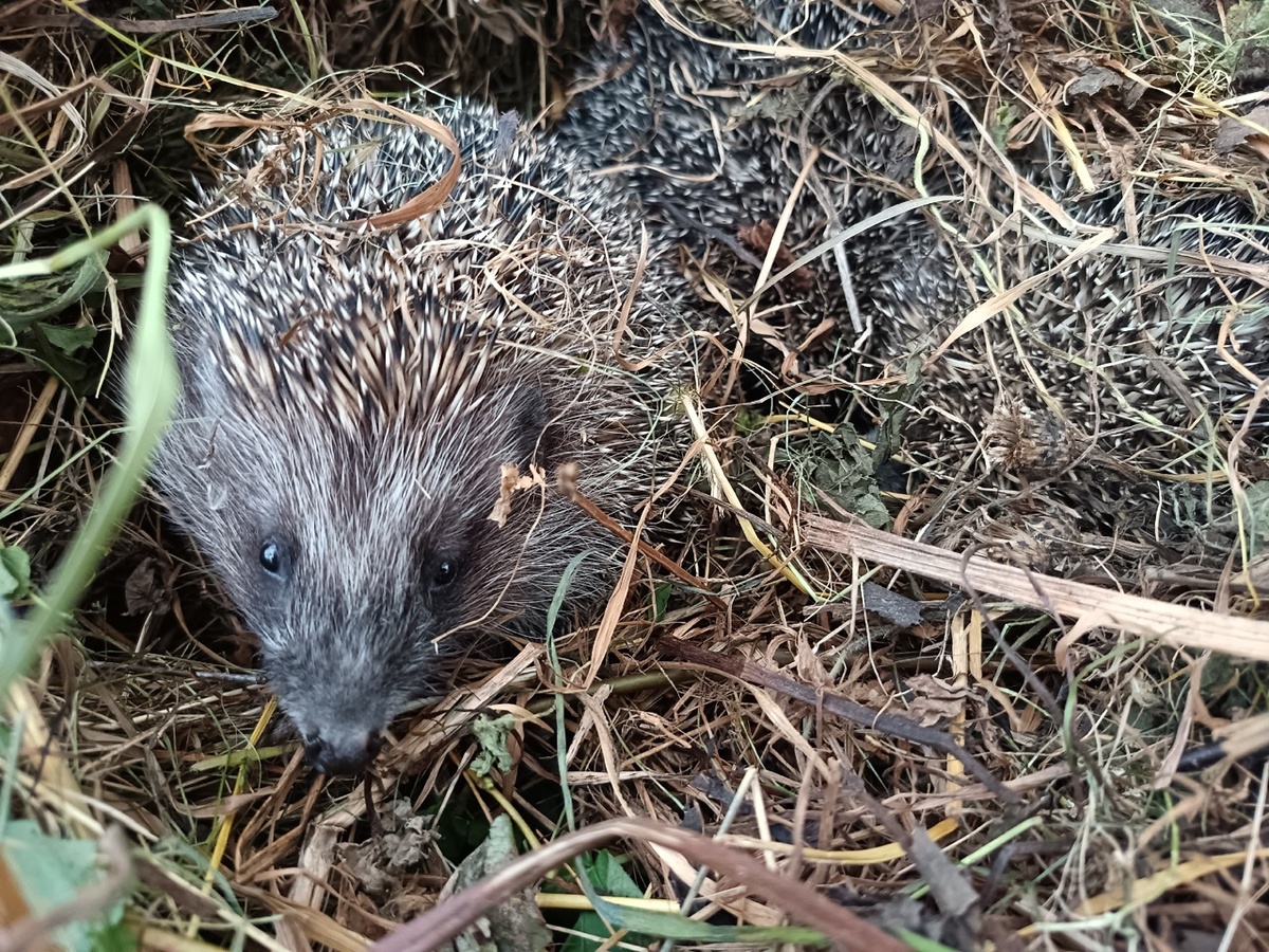 Наше желание оставить ежат, попавших к нам в июне из Московской области и выросших в больших зверей на зимовку в вольере нашего Центра, не увенчалось успехом... Ежи, съевшие все и вся что проживало в вольере вместе с ними или забегало туда - лягушек, червей, ящериц и всякую ползающую мелочь, решили стать свободными и начали подкапывать сетку и готовить побег. И им это почти удалось....Вот только габариты помешали осуществить мечту до конца. Головы в дырки пролезли, а попы остались. Ну насильно в Центре мы никого не задерживаем, тем более что проживать на свободе они будут на нашей территории и тут им ничего не угрожает...Собаки наши никого не трогают, а посторонним проход закрыт. Выпустили мы своих питомцев и начали наблюдать. Немного полежав колючими шариками, они развернулись и стали изучать обстановку. И сразу находить что-то съедобное у себя под ногами и с чавканьем поедать. Ну и пошли кто куда. Понаблюдав за тем как они скрылись в траве, пошли домой и мы. А на обратном пути Ума