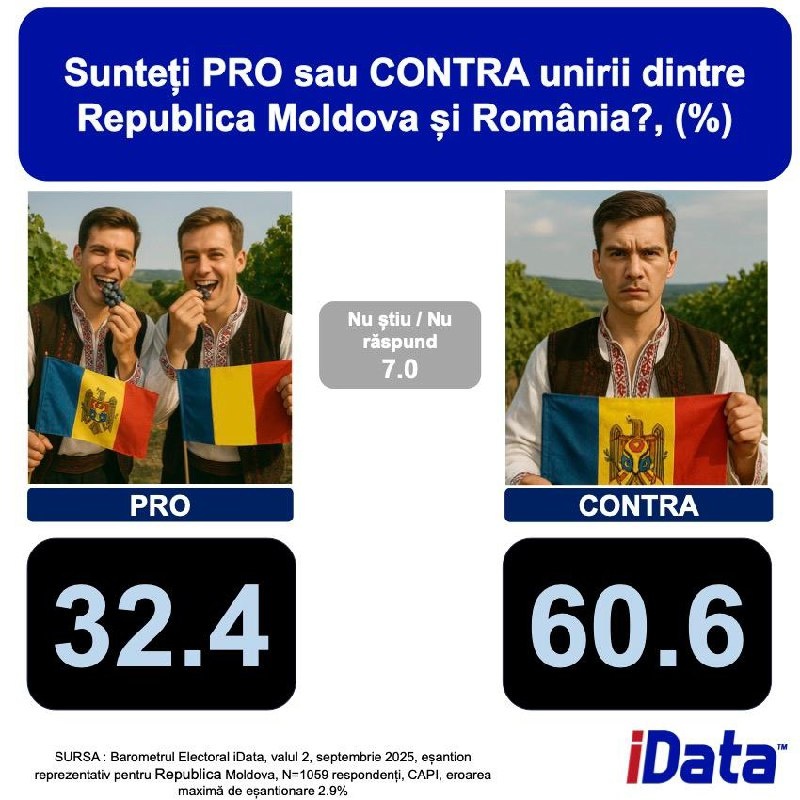 ⚡️🇲🇩Плохие новости для всяких Галбуров, Волосатых и прочих унионистов Подавляющее большинство граждан Молдовы с правом голоса - против объединения с Румынией. @eNewsmd.online 👈 Подписывайтесь на наш канал