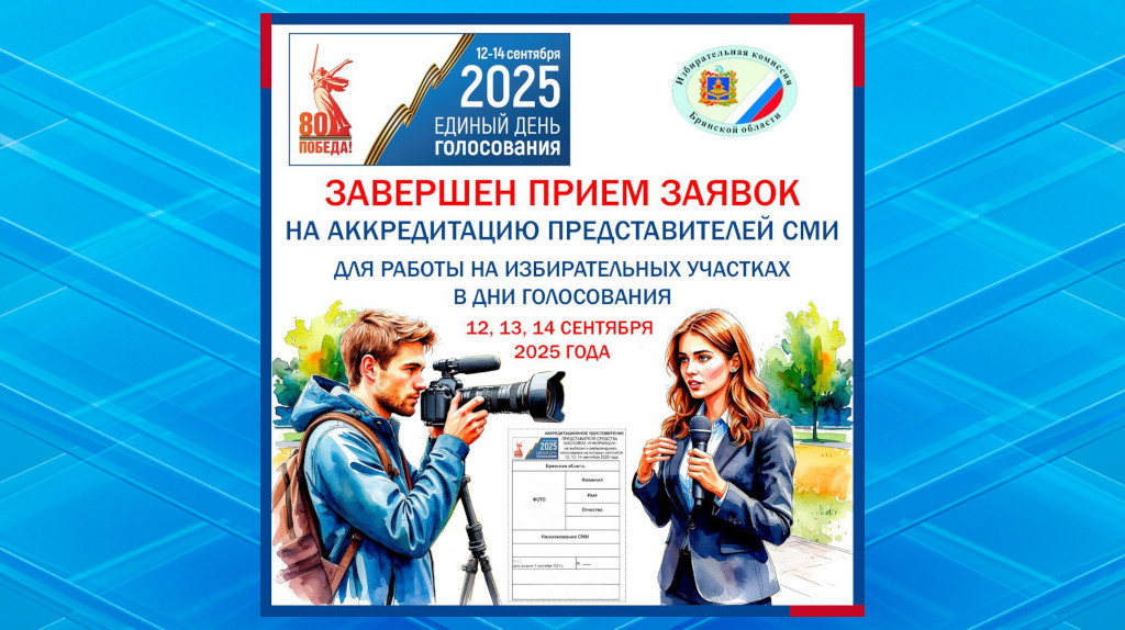 Избирательная комиссия Брянской области завершила прием заявок на аккредитацию от представителей средств массовой информации для работы на избирательных участках на выборах 2025 года. Напомним, всем жителям региона предстоит избрать губернатора, кроме того, состоятся дополнительные выборы депутата Брянской областной Думы восьмого созыва по Климовскому одномандатному избирательному округу № 26 и выборы Советов народных депутатов муниципальных образований в Брянской области.