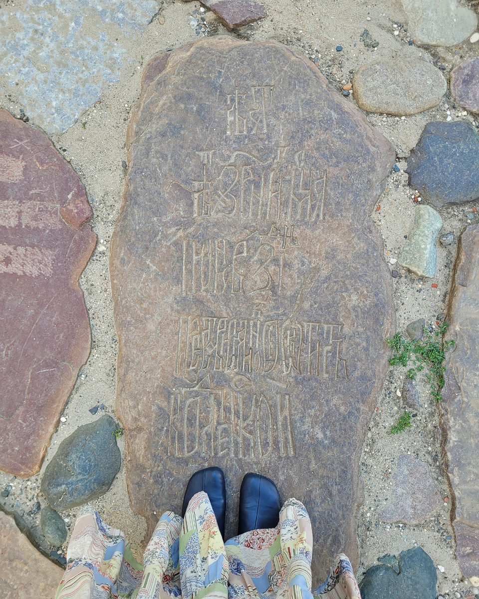 Мы шли по плитам... по могильным плитам! По мостовой из них! И сразу дружно решили, что это появилось в Кирилло-Белозерском монастыре в советские годы — ну а когда ещё могли сделать такое. Оказалось же, что двести с лишним лет назад — ещё в конце XVIII века! ...шли не очень, а этот материал был доступным. Вот и было решено сделать тротуар из древних надгробий, которые погружались в землю, зарастали травой и уже не выполняли своей функции. Есть даже плита игумена Сильвестра, который возглавлял монастырь с 1604 по 1606 год. ...это уникально — нигде такого не увидишь. И для меня лично стало открытием — ведь я здесь уже была, но не помню совершенно. Правда, тогда была зима))) Да и давно приезжала) В общем, сейчас открывала для себя Кирилло-Белозерскую обитель заново. ...многое. Какие стены невероятные! Многоэтажка — не иначе))) Я не припомню, чтобы где-то ещё было три яруса на крепостной стене! И как они смотрятся — особенно с солнцем! Тени, арки, колонны, перспективы! На втором этаже прос