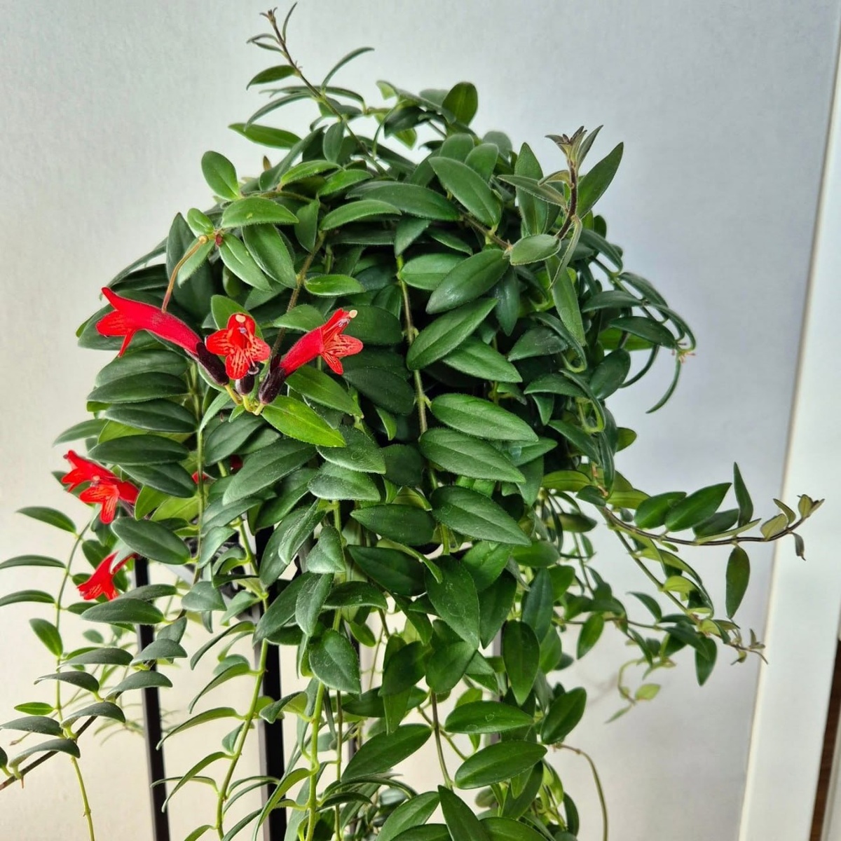 🌸 Эсхинантус (Aeschynanthus) — род растений семейства геснериевых. В викторианской Англии он был фаворитом оранжерей, символизируя утончённость и экзотику. Сегодня — звезда садовых выставок и домашних коллекций. 🌟 Уход за эсхинантусом: ☀️ Освещение: утреннее/вечернее солнце. 💧 Полив: умеренный и регулярный. Между поливами почве нужно дать просохнуть в верхней трети горшка; летом чаще, зимой реже. 🌡 Температура: +20...+25 °C днём, +18 °C ночью; зимой не ниже +15 °C. 💦 Влажность: желательна высокая влажность, но мирится с обычными условиями. 🌿 Подкормка: весна-лето (период цветения) каждые 2 недели универсальными удобрениями или для цветущих растений; зимой — минимум. ✂️ Обрезка: весной можно укоротить побеги для компактности и стимуляции кустистости. 🔄 Размножение: верхушечными черенками весной; укореняйте в воде или влажном перлите; молодые растения зацветут через год.