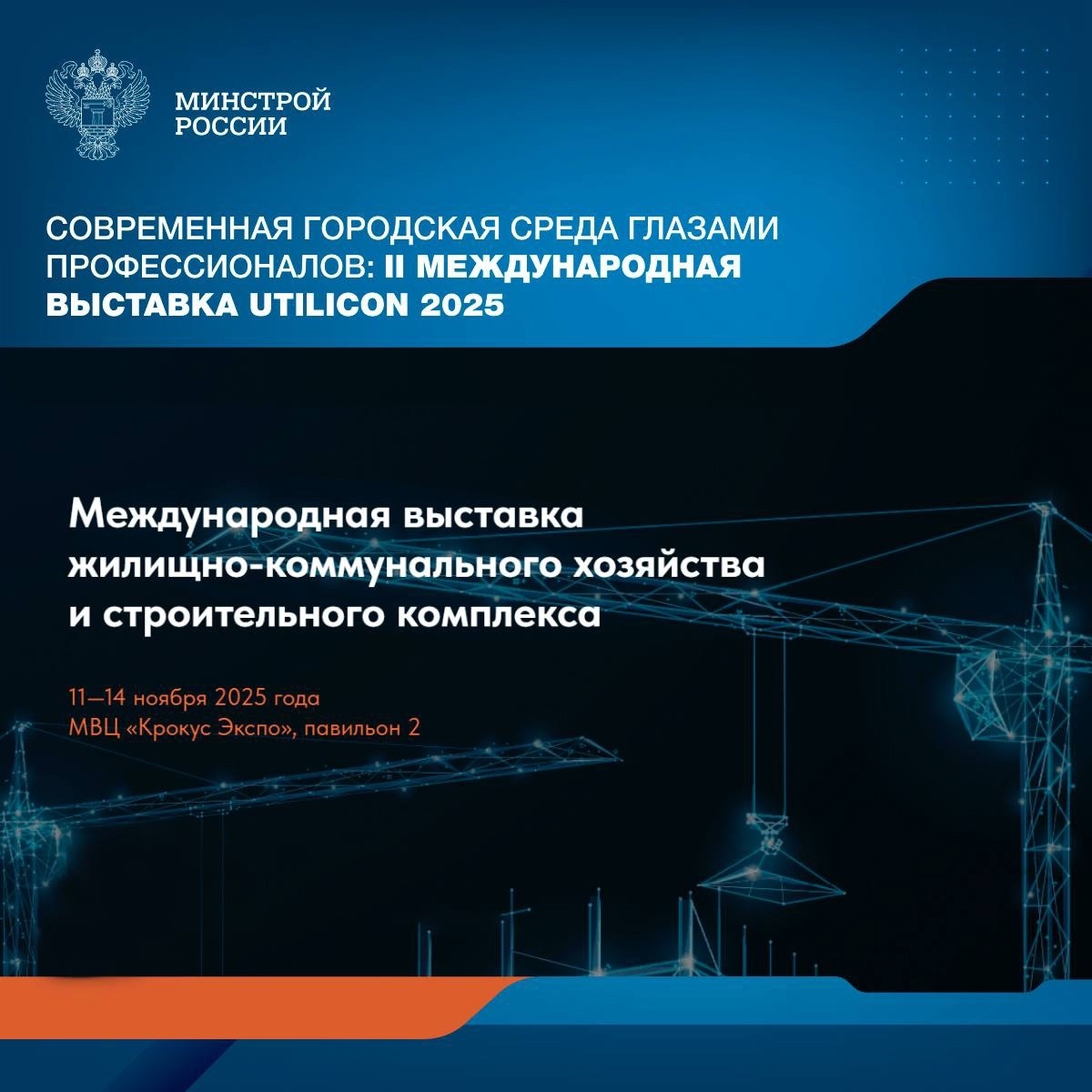 В «Крокус Экспо» с 11 по 14 ноября 2025 года пройдет II Международная выставка жилищно-коммунального хозяйства и строительного комплекса UtiliCon 2025. ⚡️Мероприятие станет важнейшей составляющей крупного международного проекта «МЕГАПОЛИС ЭКСПО: технологии и решения для современных городов», проводимого при поддержке Минстроя России. Профессиональная площадка соберёт лидеров строительной отрасли, представителей управляющих организаций, муниципалитетов и ведущих поставщиков оборудования и технологий. На выставке будут продемонстрированы инновационные подходы и достижения: 🔵Автоматизированные инженерные сети и умные дома; 🔵Современные строительные материалы и энергосберегающие технологии; 🔵Мониторинг состояния жилой инфраструктуры и эффективное управление объектами; 🔵Интерактивные транспортные и логистические системы; 🔵Использование телематики и Интернета в системах жизнеобеспечения; 🔵Совершенствование методов проектирования и реконструкции городской среды. Зарегистриров