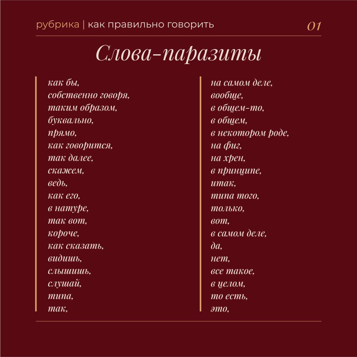 Когда мы впервые появляемся в обществе, нас сначала считывают по одежде, а затем... Мы начинаем говорить. И если эффектно подобранным нарядом мы можем произвести должное впечатление, то неграмотная или некрасивая речь способна разрушить его с первой минуты.🤷🏻♀️ Поэтому каждому (без исключения) необходим навык красиво и интересно выражать мысли. Ведь в современном мире риторика — неотъемлемая часть успешного личного бренда. Следите за отсутствием речевого «фаст-фуда», то есть мусорных слов, слов-паразитов. Кстати, в самом языке лишних слов нет, таковыми они становятся из-за частого и неуместного их употребления. Наличие в речи вульгаризмов, жаргонизмов, и тем более обсценных и бранных слов в большей степени относится к культурному уровню говорящего. С чего начать? Включите диктофон или камеру. Запишите свою речь, а затем послушайте и проанализируйте запись. Вам будет слышно все: чистота речи, тембр голоса и его высота, интонации, темп речи, артикуляция… А если фиксируете себя на
