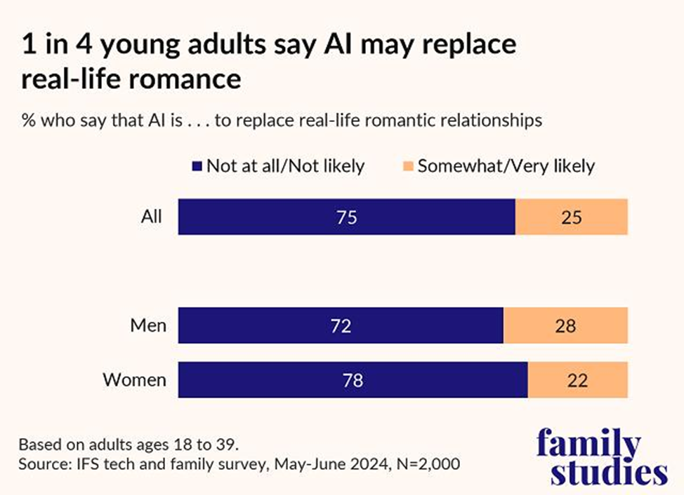 Одна четверть молодых готова к романам с ИИ: итоги опроса в США