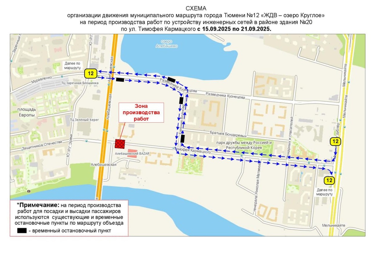🚌Маршрут № 12 временно изменит схему движения В период с 15 по 21 сентября 2025 года в связи с выполнением работ в районе здания № 20 по ул. Тимофея Кармацкого маршрут № 12 «ЖДВ – озеро Круглое» будет следовать в объезд перекрытого участка со всеми существующими остановочными пунктами по маршруту объезда. Расписание для пассажиров общественного транспорта доступно в разделе «Расписание» на сайте tgt72.ru, в мобильном приложении «Тюменский транспорт», по бесплатному номеру телефона информационно-справочной службы 8-800-250-0722 и на остановках. МКУ «Тюменьгортранс»