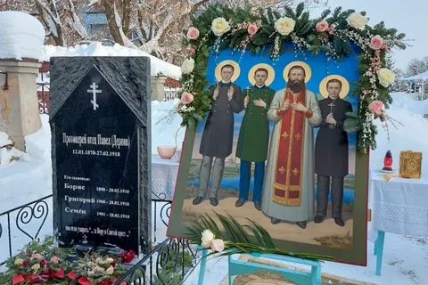 На третий день Евгения Федоровна Хорина собрала верующих девушек, и они, взяв короб, пошли на место расстрела, чтобы собрать мученическую кровь и частицы. Затем сложили все найденное в короб, вырыли на месте убиения яму и вложили туда короб с останками.