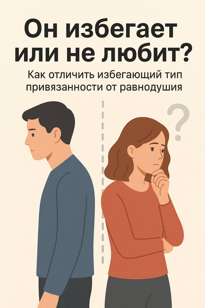 Вы познакомились с мужчиной, но он то исчезает, то появляется, то отстраняется, то снова проявляет интерес. В голове возникает вопрос: "Ему было слишком хорошо со мной, он испугался…" Разберемся, как отличить одно от другого Люди с таким стилем бояться близости. Им важно сохранять дистанцию, даже если чувства есть. Они могут: Это не значит что у него нет чувств. Иногда наоборот - чем сильнее влюблен, тем больше старается "держать дистанцию" А вот если мужчины не заинтересован, его поведение другое Здесь, чисто равнодушие и "внутренней борьбы" здесь нет Я приведу Вам несколько примеров - ловушек, по которым легко понять, он избегающий или равнодушный Пример-ловушка 1. Пропал на неделю "Он испугался чувств" - на деле: избегающий тип объявится, чтобы проверить дистанцию, безразличный - просто исчезнет Пример-ловушка 2. Молчание в переписке На деле даже избегающий мужчина, найдет о чем поговорить с женщиной, безразличный - вообще не включается в диалог Что же Вам делать? Определите