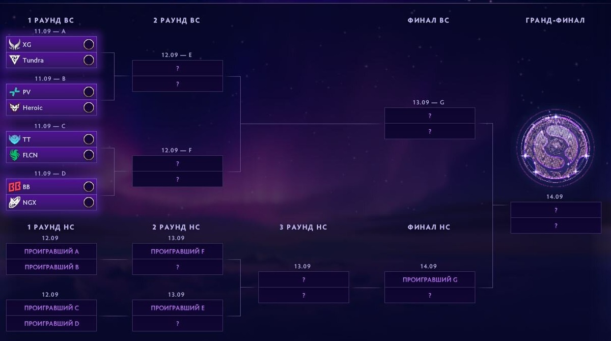 📺 Докажи, что ты главный болельщик, — и выиграй телевизор Прогнозы могут сделать все пользователи в клиенте игры. Пары плей-офф TI14: 11:00 Xtreme – Tundra 14:00 PARIVISION – Heroic 17:00 Tidebound – Falcons 20:00 BetBoom Team – Nigma Какие прогнозы делать в Компендиуме The International 2025? The International 2025 проходит в Гамбурге с 4 по 14 сентября. Призовой фонд на момент старта турнира – 2,39 млн долларов. За расписанием и результатами TI14 следите на Кибере по ссылке. Ранее стало известно, что только 6 человек выставили в предсказаниях к TI14 корректно 10 команд. 5% угадали хотя бы 5 коллективов. Что там у наших на Инте? Онлайн всех событий Aurora вылетела! А никто и не удивлен