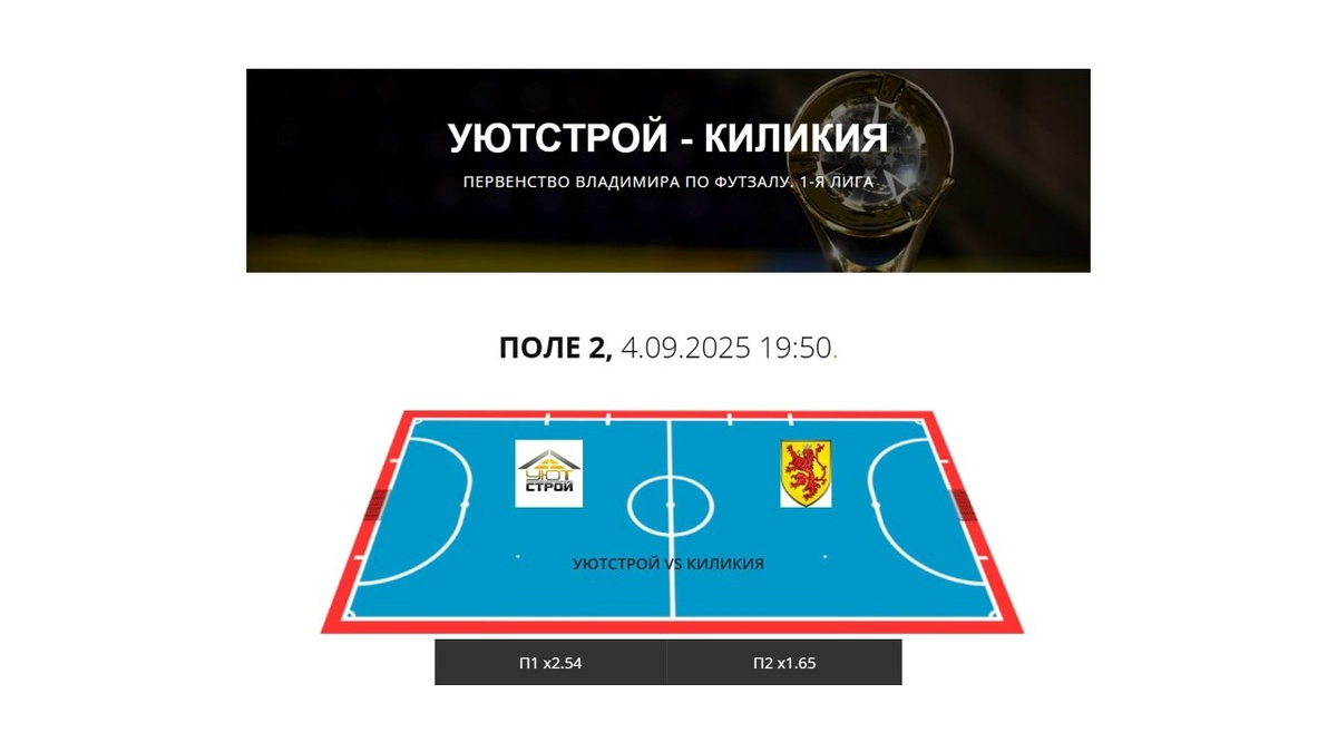 Первенство Владимира по футзалу. 1-я лига. 04.09.2025 г. УютСтрой - Киликия 1:1 (0:1) Обзор