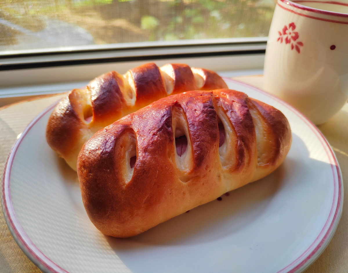 Сосиски в тесте любят и взрослые и, особенно, дети. Принципиально не хочу затрагивать тему их пищевой ценности. Просто предлагаю рецепт для тех, кто лояльно относится и к сосискам, и к тесту 🤗 Придумывая этот рецепт, я хотела, чтобы он был максимально простым, начиная от замеса теста и заканчивая формовкой: никакой фигурной лепки, косичек и т.д. Но, при этом, чтобы это были самые-самые вкусные сосиски в тесте 🤤 - сосиски 5 шт. - молоко 150 мл - желток 1 среднего яйца - масло сливочное 35 г - мука в/с 270 г - дрожжи живые 15 г или сухие 5 г - сахар 2 ч.ложки - соль 1/2 ч.ложки Для приготовления дрожжевого теста, растворяем в тёплом молоке сахар и дрожжи: Прикрываем миску и оставляем минут на 15, чтобы дрожжи заработали. ☝️Если вы используете сухие быстродействующие дрожжи, пропустите этот этап. Масло немного подтапливаем в микроволновке. От яйца берём только желток, белок можно убрать в холодильник и использовать для других блюд: В опару добавляем желток, перемешиваем: Всыпаем