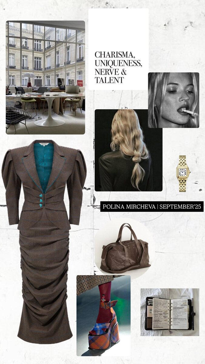Today’s fit Костюм Innuendo занимает особое место в коллекции. Кто-то видит в нем отголоски Dior, кто-то Vivienne Westwood, кто-то, все-таки Полину. Но равнодушных нет, образ в этом костюме - это будет история про какой-то высокий класс. Жакет Innuendo Юбка Innuendo