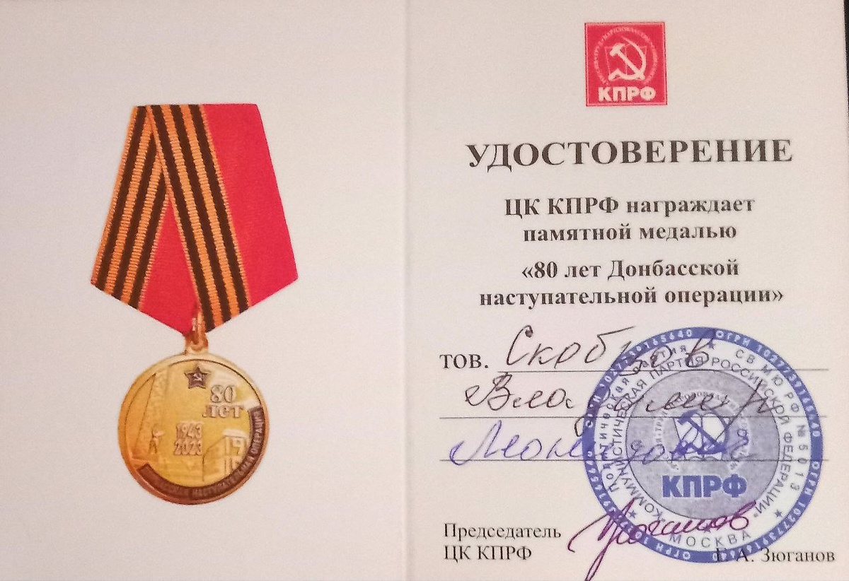 Награда от Родины в замечательный праздник, День освобождения Донбасса от немецко-фашистских захватчиков. Служу России, служу Народу Донбасса!