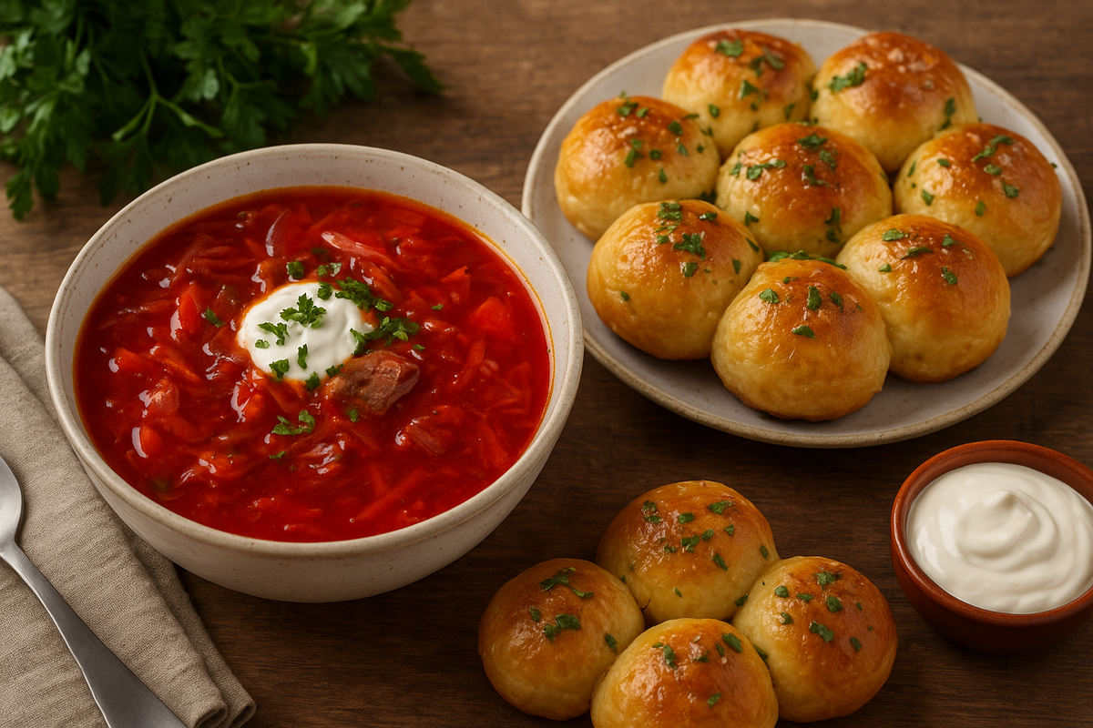 🥘 Рецепт дня: Борщ с чесночными помпушками – вкус, который невозможно забыть