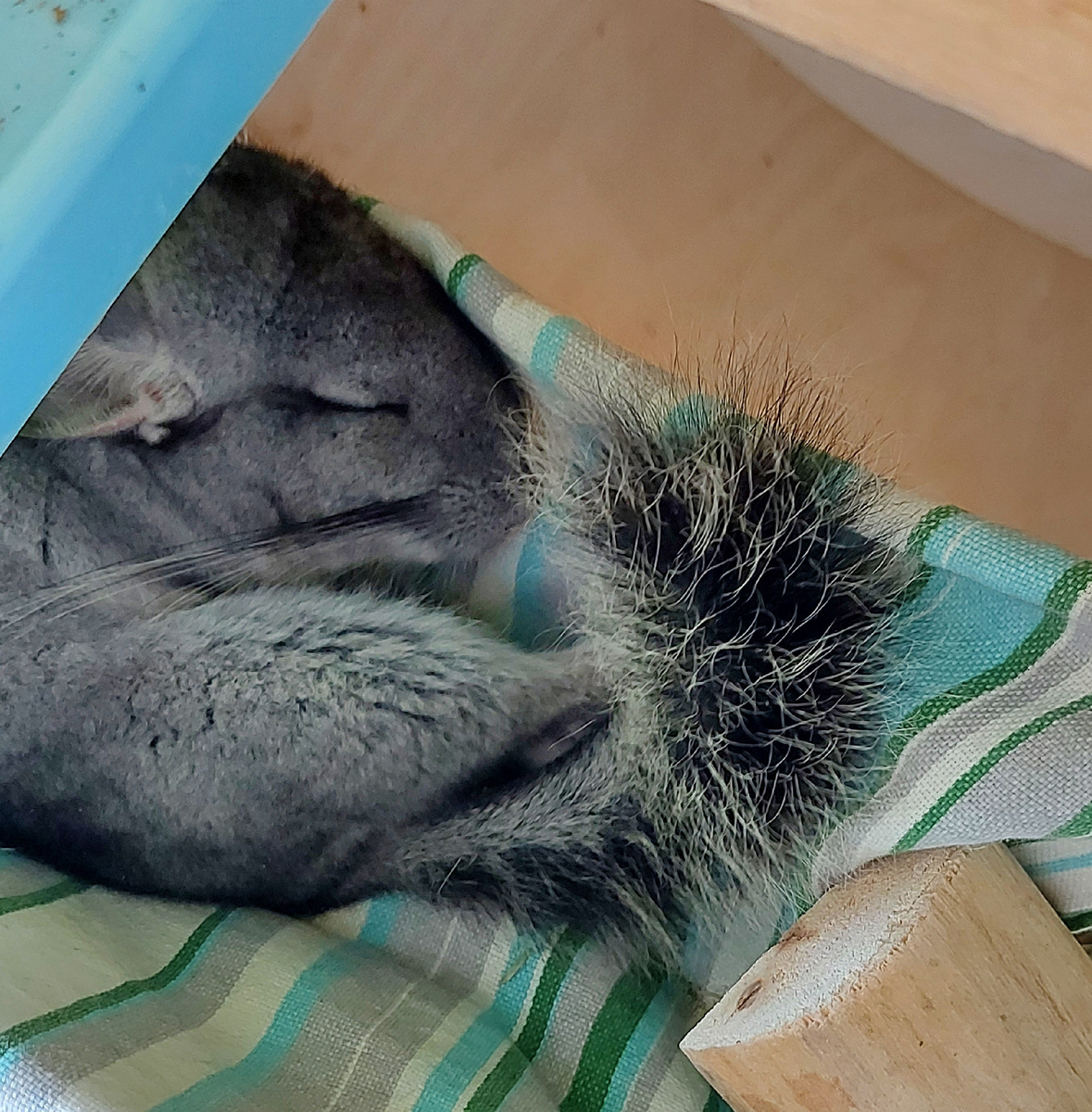 Если при прикосновении к шиншилле у нее выпал пучок меха, или она реагирует на вас лаем, то ее нужно оставить в покое на пару дней.