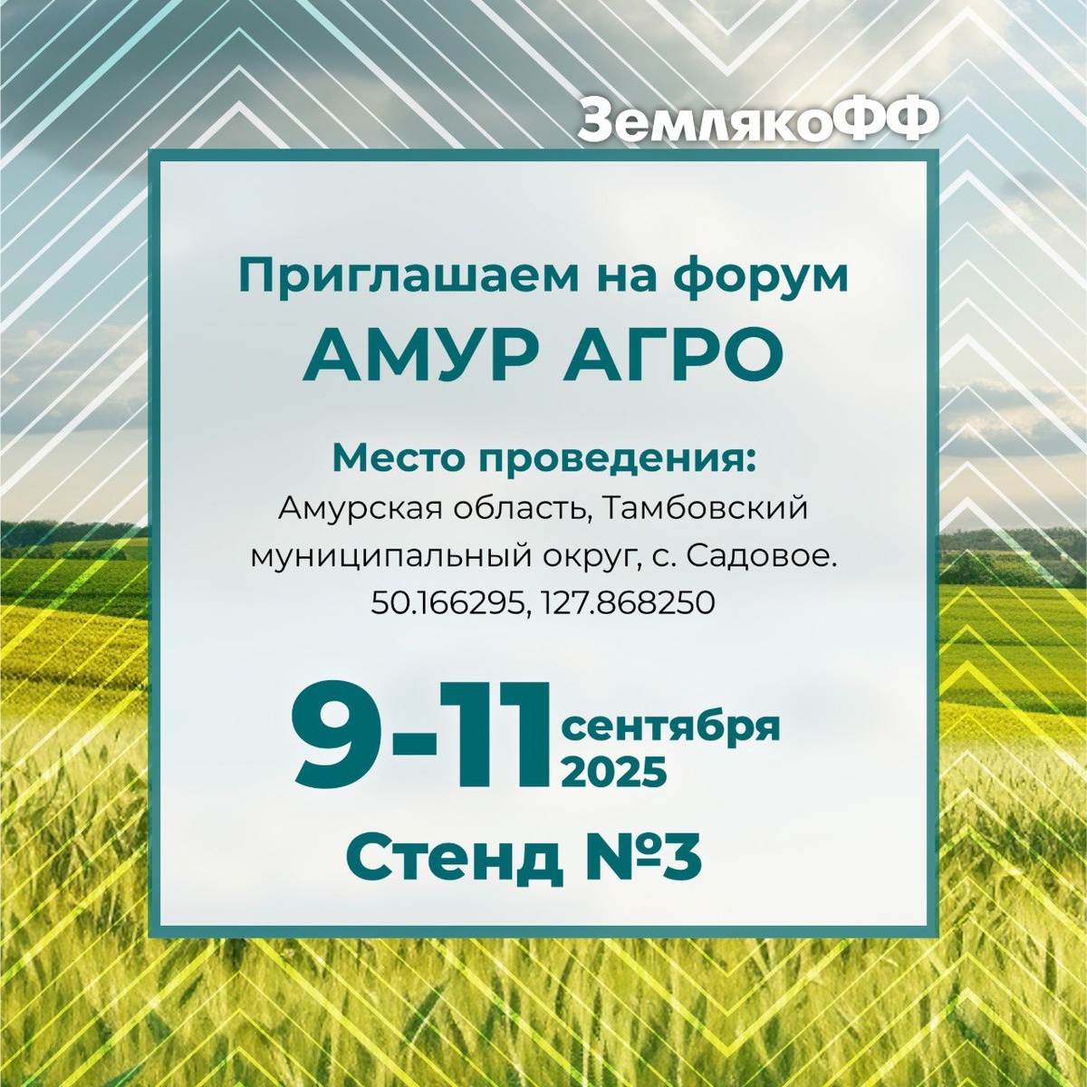 ⚡9-11 сентября Амур Агро Форум. Приглашаем посетить стенд компании "ЗемлякоФФ" (№3). На нашем стенде вы сможете ознакомиться с нашими продуктами. Форум предоставит сельхозтоваропроизводителям, представителям науки и бизнеса уникальную возможность обменяться опытом, обсудить проблемы и перспективы развития аграрной отрасли. Аграрии Дальнего Востока смогут обменяться передовым опытом в области растениеводства. По возделыванию сортов и культур, направленных на устойчивый рост производства, продемонстрировать региональные разработки и результаты работы. 📍Место проведения: Амурская область, Тамбовский муниципальный округ, с. Садовое 50.166361, 127.868333