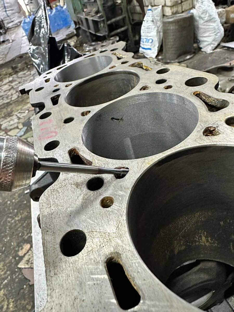В ответ на пост Продолжение поста. Помните пост с гильзовой блока с Лансера 9? У которого вскрылись водяные каналы. Так вот продолжаю его ремонт, нарезаю резьбу в этих каналах, продуваю все от стружки и устанавливаю гильзы. После установки гильз вкручиваю туда болтики под шестигранник с резьбой М4. Вкручиваю из на клей, после оставляю блок на сутки, чтобы высох клей. Потом растачиваю, обнижаю гильзы и отдаю на опрессовку. Но вот увы, блок дует из под гильз. И сверху и снизу. Теперь блок точно труп) Хотя уже ни один раз делали такую процедуру и все получалось отлично. #лансер #гильзовка #опрессовка