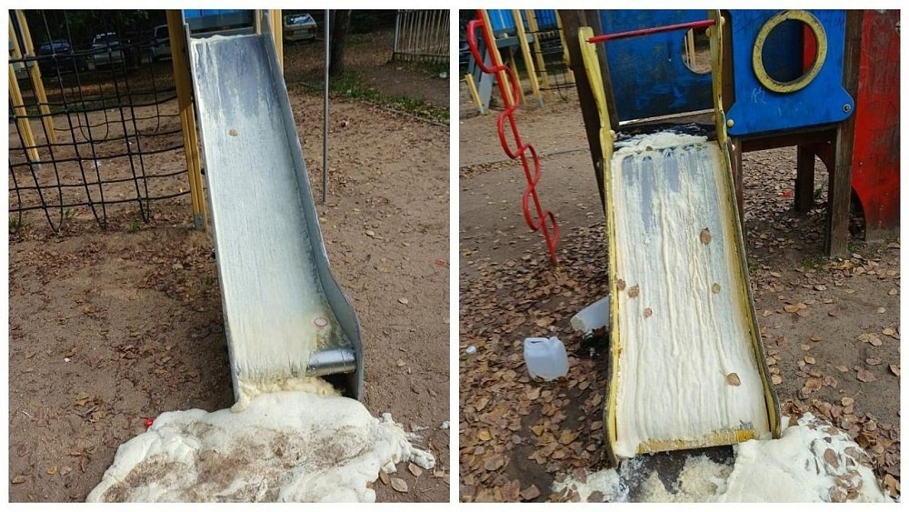 Три залитые монтажной пеной детские горки обнаружили очевидцы в челябинских дворах по улицам 60 лет Октября и Сталеваров. О новом виде вандализма передает 1obl.ru. Известно, что вандалами занимается полиция. Вопрос находится на личном контроле мэра города Алексея Лошкина. Ранее злоумышленники повредили качели в уфимском сквере «Матерей».