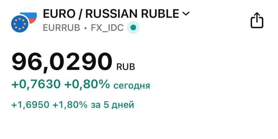 Евро превысил отметку 96 рублей. Курс евро вырос, достигнув более 96 рублей, что создает интерес на валютном рынке. ────────── ⚡️Важные новости – без лишнего шума!⚡️ Подпишись на канал и получай только суть: оперативно, чётко, по делу! 👉 ИнфоСплетник | @infospletnik