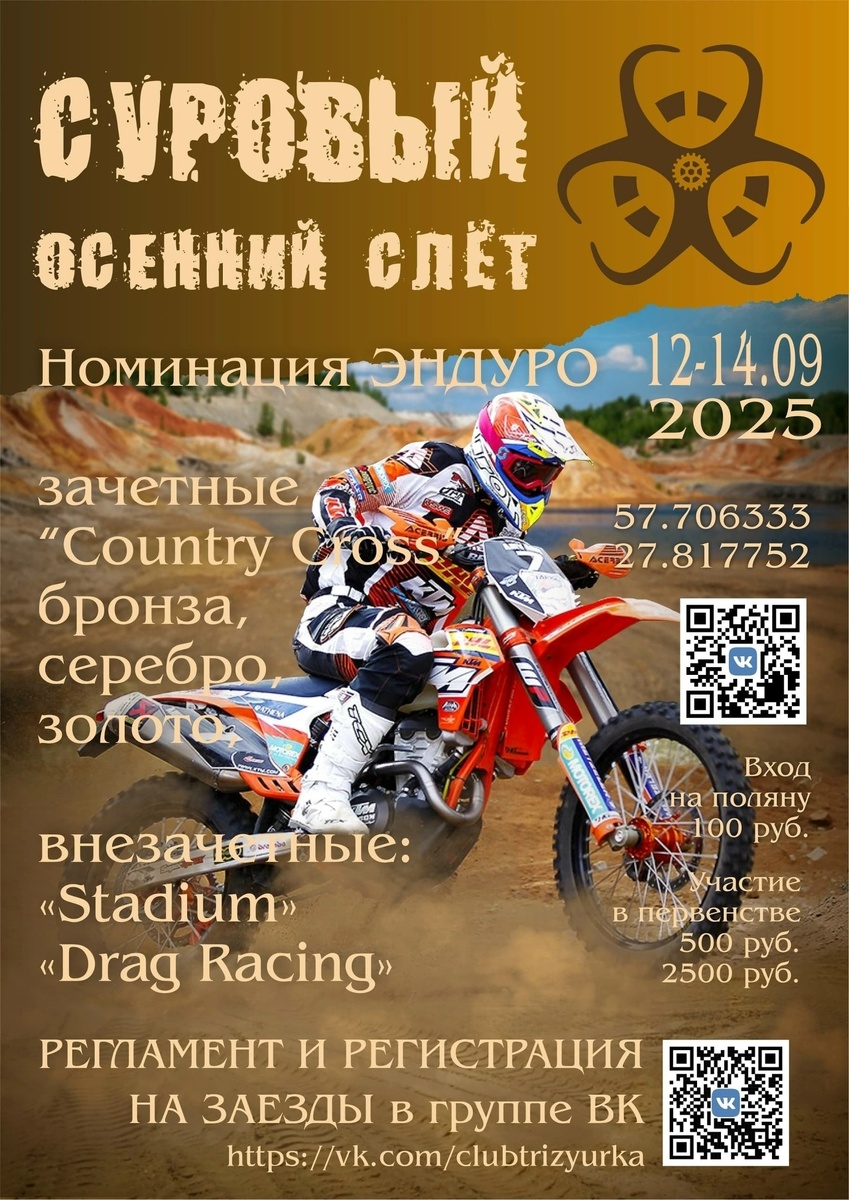 🔁 Дальняк.рф™: Друзья, всем привет 12,13,14 сентября состоится мотослёт, в рамках которого организуется эндуро заезд. Место: Псковская область, территория туристко-спортивного комплекса Березовый хутор. План мероприятия: 12го числа: 18.00 заезд эндуро стадион (только онлайн регистрация, на месте регистрации нет) Стоимость участия 500р. 13го числа: 8.30-9.45: регистрация 10.00: брифинг 10.15-10.45: старт классов лайт, хобби, хард. 18.00: награждение. Стадион- отдельная дисциплина, награждаются отдельно. На стартовую позицию не влияет. Класс лайт: Старт с мотокроссовой трассы, минуя стадион уезжают на лесной трек-6км. Один круг. Стартовый взнос 1000р Класс хобби: Старт с мотокроссовой трассы, частично стадион и уезжают на лесной трек ~~14км. Два круга. Стартовый взнос 2000р Класс хард: Старт с мотокроссовой трассы, полный стадион и уезжают на лесной трек ~~14км. Три круга Стартовый взнос 2000р Первые три места каждого класса награждаемы ценными призами. Стартовые номера выдаются при