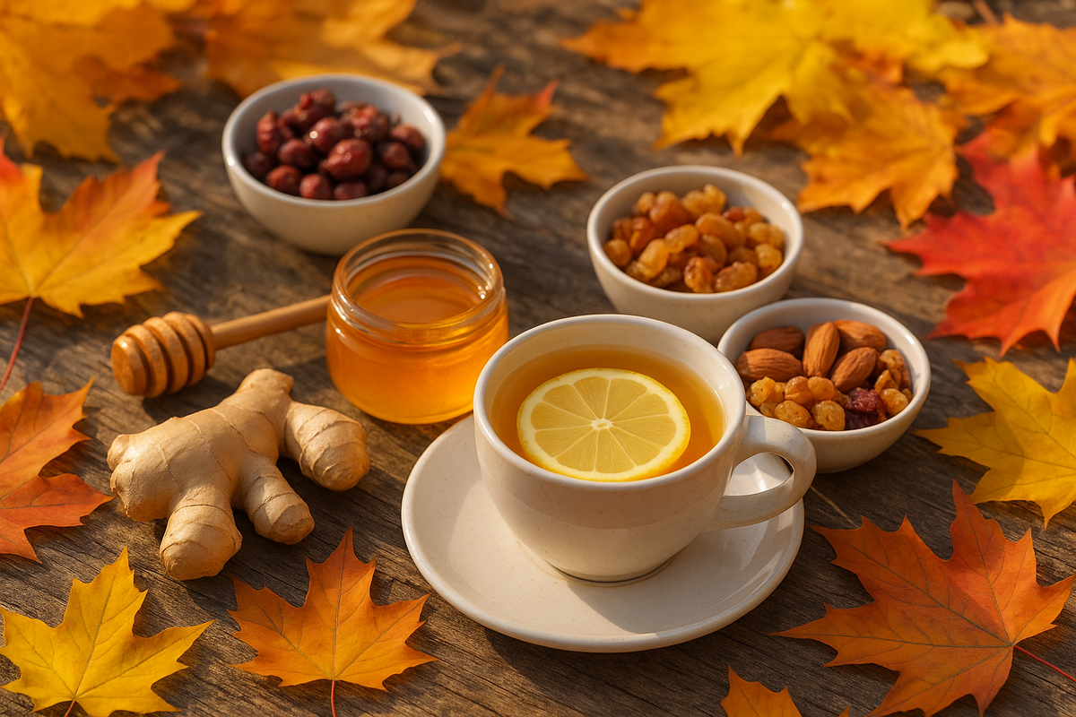 Осень - пора ярких красок, свежего воздуха и… первых холодов. В это время наш организм особенно уязвим перед вирусами и простудами. Поэтому именно сейчас важно уделить внимание укреплению иммунитета и добавить в рацион продукты, которые помогут защититься от респираторных заболеваний. Простые домашние рецепты на основе натуральных ингредиентов станут вашей надежной поддержкой в сезон простуд. Ингредиенты: Приготовление: Имбирь натрите на тёрке, залейте горячей водой и дайте настояться 10 минут. Добавьте лимон и мёд. Этот напиток согревает, снимает воспаление и помогает при первых признаках простуды. Ингредиенты: Приготовление: Залейте шиповник кипятком в термосе и оставьте на ночь. Настой богат витамином С, укрепляет сосуды и повышает сопротивляемость организма. Ингредиенты: Приготовление: Все ингредиенты измельчите и смешайте с мёдом. Храните в банке и употребляйте по 1 - 2 ст. л. в день. Смесь укрепляет сердце, иммунитет и даёт заряд энергии. Ингредиенты: Приготовление: Молоко нагре