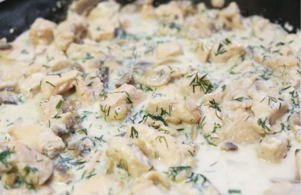 Вкусный рецепт на сегодня — Курица в сливочном соусе с грибами.