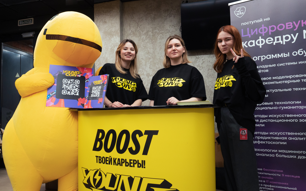Если говорить про Young Con, то я горжусь, что мне удалось уговорить «Яндекса» пригласить их маскота Дино, который раньше никогда не приезжал в МАИ. Студенты были в восторге!