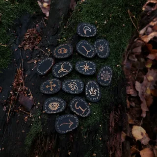 - Современное использование: Руны применяются в гадании (расклады на 1–3 руны), ритуалах, создании амулетов и зелий. Для гадания бросайте руны на ткань, читая только те, что лежат лицом вверх. Если все руны перевёрнуты, отложите гадание на неделю.