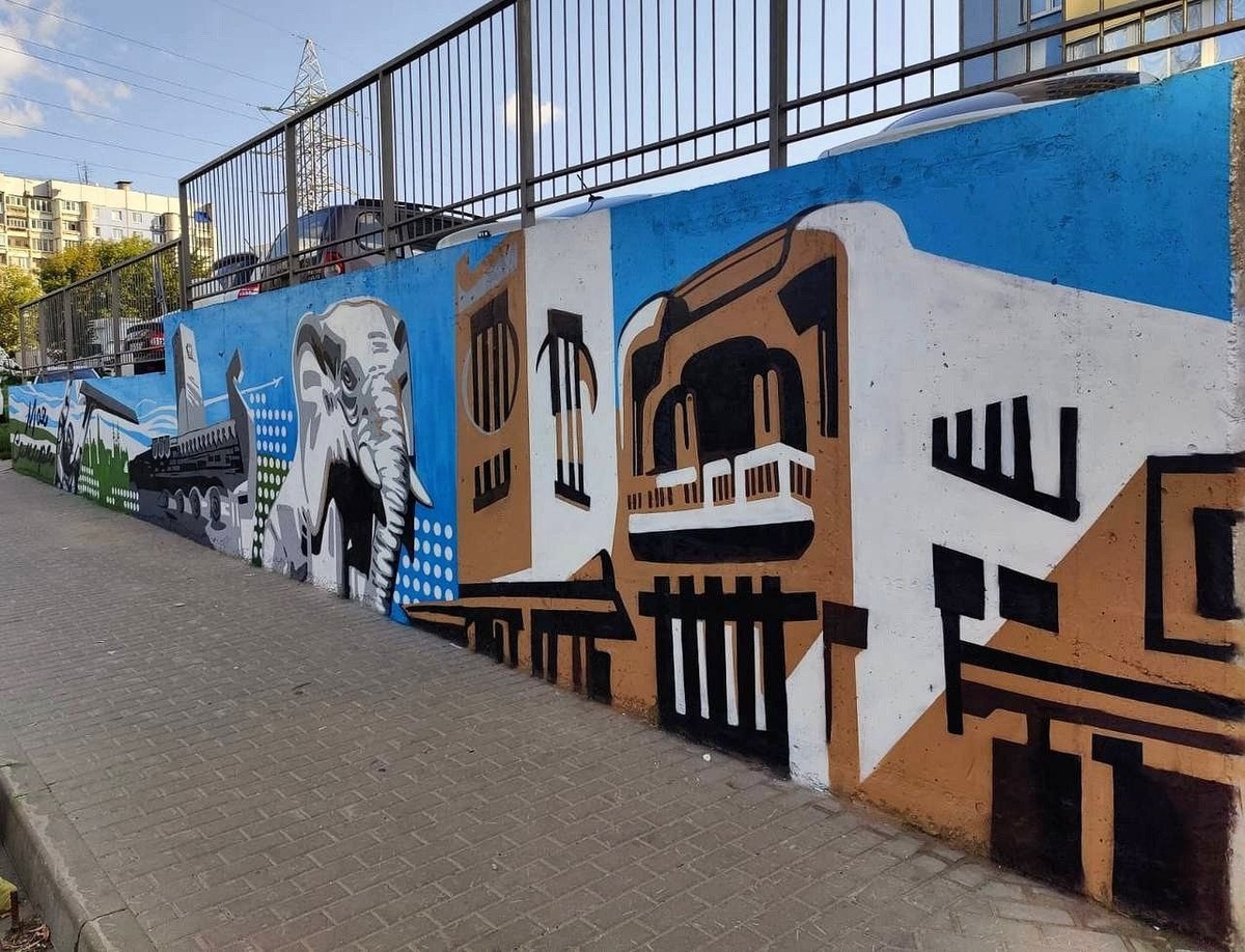 На стене изобразили достопримечательности города.