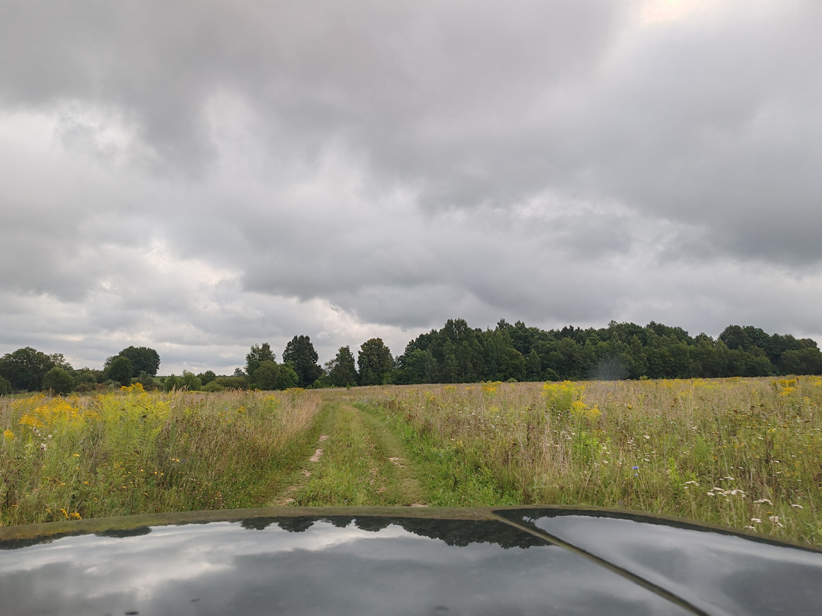 Добирались мы по дороге между полями, мимо болота, а часть пути шли пешком, так как машина там не проедет - нет дороги.