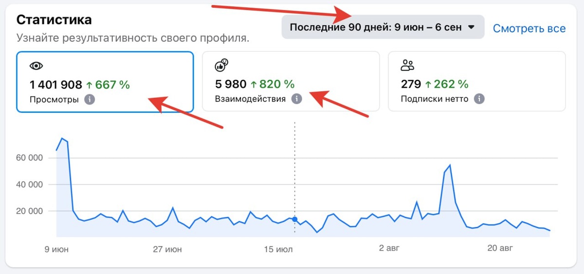 Статистика моего профиля в ФБ (запрещен в РФ) за 90 дней