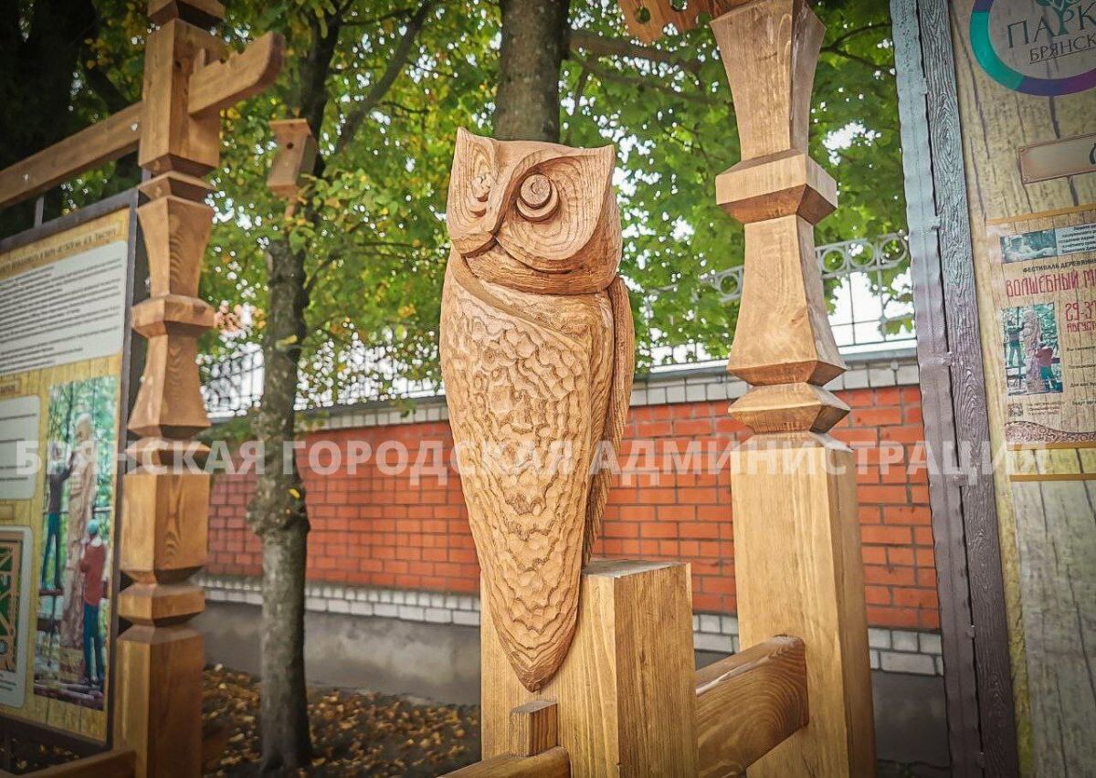 В парке имени Алексея Толстого облцентра появились необычные украшения — резные фигуры сов, которые придали входной зоне уникальный и запоминающийся облик. Теперь центральный вход в парк стал еще привлекательнее благодаря новому информационному стенду, выполненному в виде трех резных рам, информирует мэрия. На них размещена информация об истории этого популярного у жителей города места отдыха. Автором идеи и исполнителем проекта стал брянский скульптор Андрей Вишневский. Основным материалом для производства стенда послужила высушенная сосна, которую художник обработал террасным маслом, чтобы обеспечить изделию эстетичный вид и долговечность. Фигуры сов, которые стали ключевым элементом оформления, были созданы из ясеня в рамках фестиваля деревянных скульптур «Волшебный мир дерева», проходившего с 29 по 31 августа в парке. Высота каждой фигурки составляет около 50 сантиметров, и они прекрасно гармонируют с природной атмосферой парка, добавляя нотки волшебства и символа мудрости.