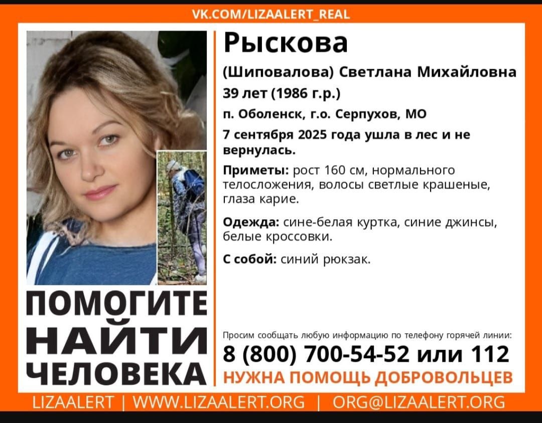 📩📤📥📨✉️Более суток назад потерялась в лесу недалеко от г.Оболенск, на связь не выходит, телефон сперва был в зоне доступа,потом через несколько часов сел.Поиски вели до ночи,сейчас подключен поисковый отряд,результатов в поиске никаких,пожалуйста если кто видел или что-то знает,сообщите 🙏🙏🙏 😀 Подпишись на Чехов Вид ✅Поддержать голосами 📲Прислать новость