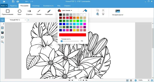 Воспользуйтесь программой PDF Commander! Раскрашивайте иллюстрации любой сложности и рисуйте прямо поверх ПДФ-документов с помощью функции «Карандаш». Скачайте PDF Commander прямо сейчас! СКАЧАТЬ БЕСПЛАТНО В каком случае может потребоваться программа для рисования в ПДФ? Например, для выделения важной информации в тексте или добавления схем и иллюстраций. Все это можно сделать внутри PDF Commander — следуйте простой инструкции ниже. Скачайте дистрибутив и запустите его. Процесс инсталляции займет не больше пары минут. Следуйте подсказкам установщика: обозначьте будущее расположение файла и создайте ярлык на рабочем столе. При запуске редактора откроется стартовое окно со списком действий. Для внесения изменений в уже существующий документ нажмите «Открыть PDF» и найдите его через проводник. В левой колонке располагается список файлов, с которыми вы недавно работали. Хотите увеличить область для рисования? Читайте статью о том, как изменить размер листа в