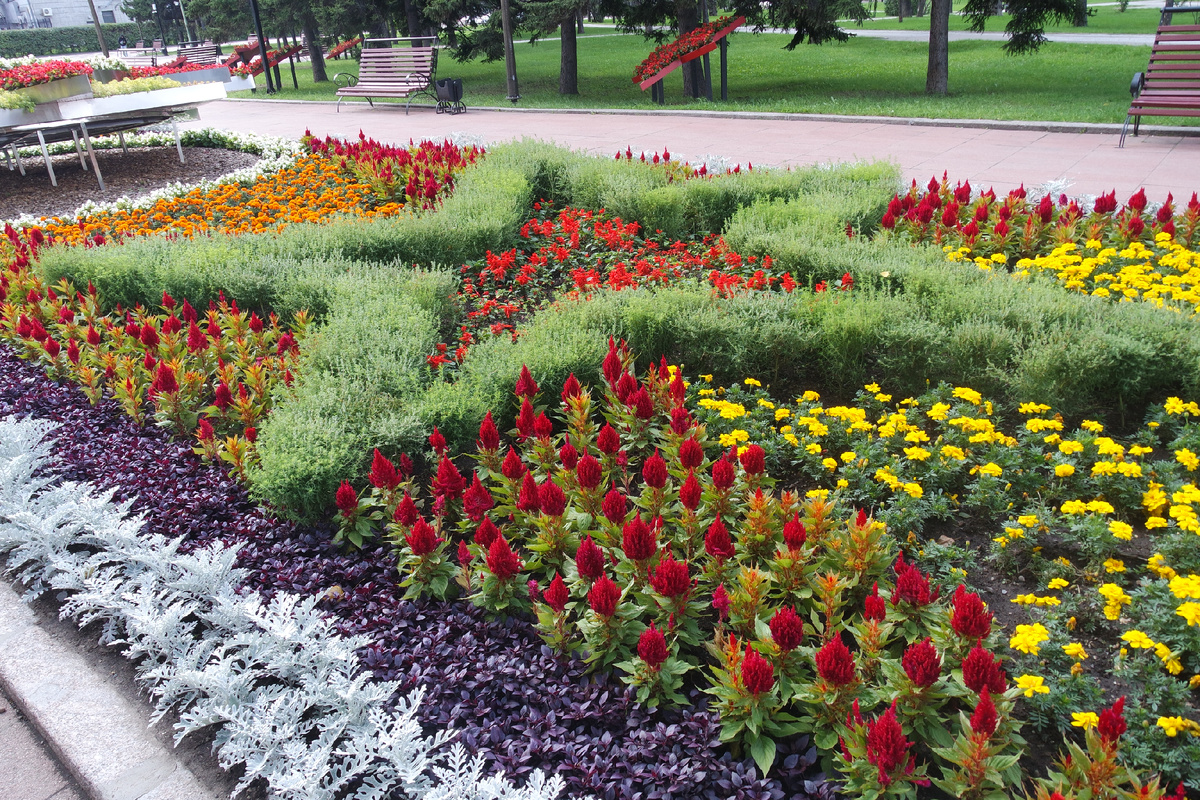 У меня тут был исторический квест с 53-ей школой в прошлую субботу, а это значит... впервые за лето у меня появилось время, чтобы сфотографировать не позирующих туристов на фоне клумб (по их просьбе), а просто сами клумбы. Давно хотела вам показать это великолепие: Клумбы эти сделали так шикарно к восьмидесятилетию Великой Победы: Всё лето собиралась: ...но просто не было времени. Спохватилась, что цветы уже начали подмерзать: Как по заказу, кстати, выглянуло солнце: А вообще день был вот такой: Цветы высажены позади здания Областной Администрации: Здесь раньше была главная доминанта города - Казанский собор (взорван в 32-ом году): Сейчас на этом фото можно увидеть костёл, Богоявленский, а ещё Спасскую церковь, которую собор словно закрывал собой... Отсюда начинаются все обзорные экскурсии по городу, а с ребятами-школьниками у нас тут проходят квесты. Очень их люблю, т.к. у меня, пока ребята выполняют задания самостоятельно, есть время. Про школы, которые я обслуживаю - писала в этой