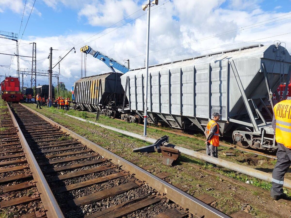 Утром на станции Пермь-Сортировочная при выполнении маневровых работ девять вагонов грузового поезда сошли с путей