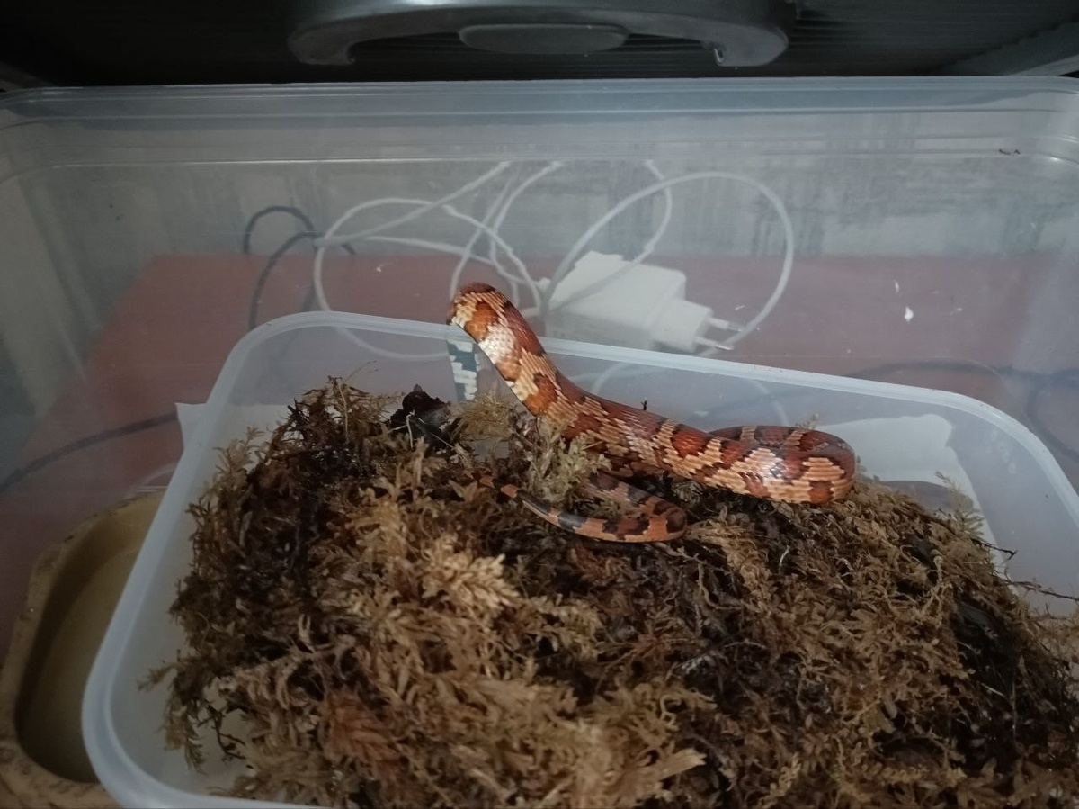 Таким мой Бек будет, когда вырастет. Сейчас он примерно до такого цвета пожелтел. Вообще маисовый полоз - это кукурузник и цвета он соответствующего. Да, есть и белые и красные, но классический - жёлтый. Мой как раз такой.