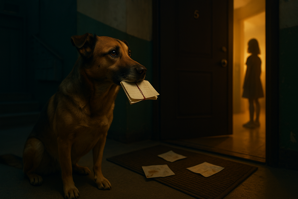 Мы ужинали гречкой с тушёнкой — лень готовить, а аппетит надо уважать. Звонок в дверь — нет, не звонок, тихий стук носом по дереву. Я открыла: Тоша стоял, как курьер с важным конвертом, и в зубах держал всё ту же тетрадную четвертинку. На этот раз аккуратно сложенную и… перевязанную ниточкой.
