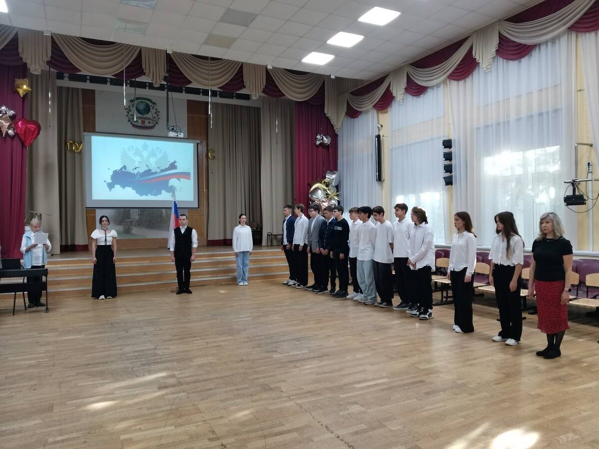 🇷🇺 Новая учебная неделя в нашей школе началась с церемонии поднятия флага Российской Федерации