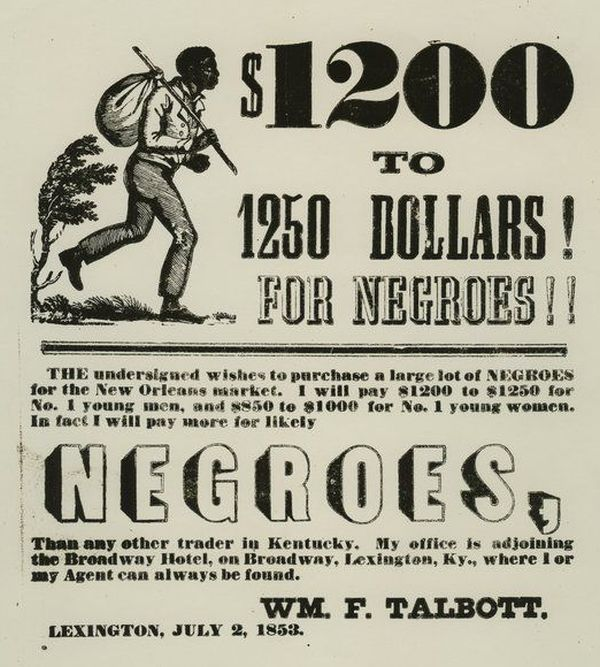 1853. Северо-Американские Соединённые Штаты. Объявление о продаже невольников