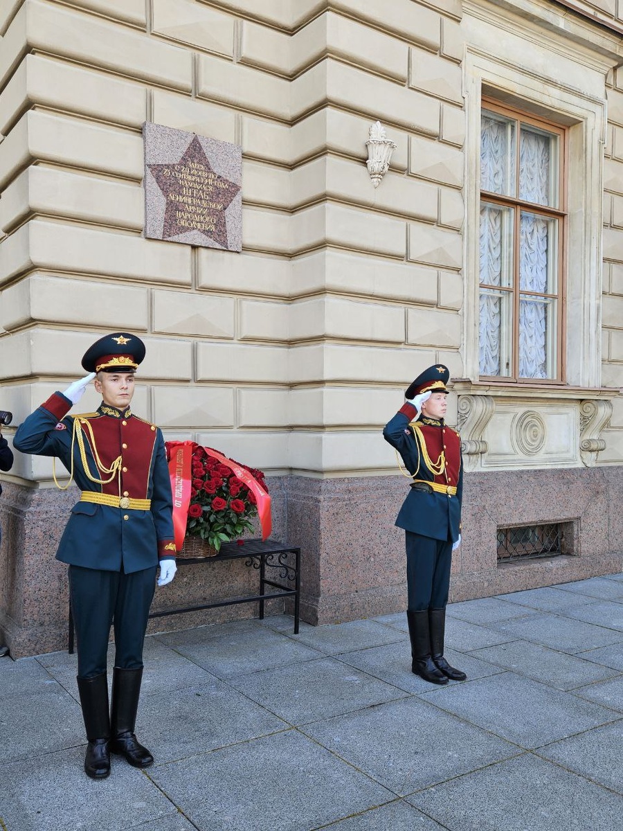 Почтил память бойцов Ленинградской армии народного ополчения (ЛАНО) у мемориальной доски на здании Мариинского дворца